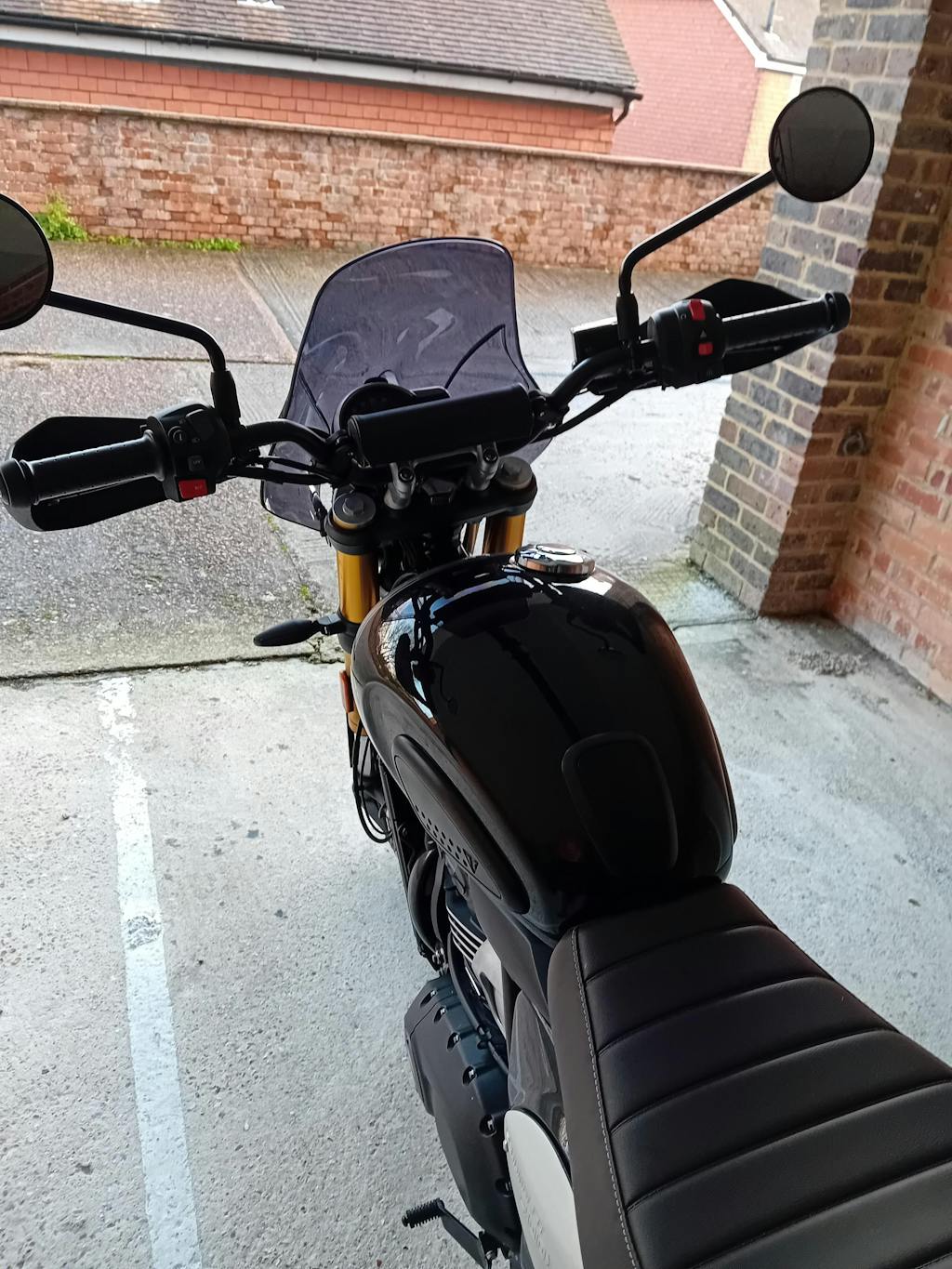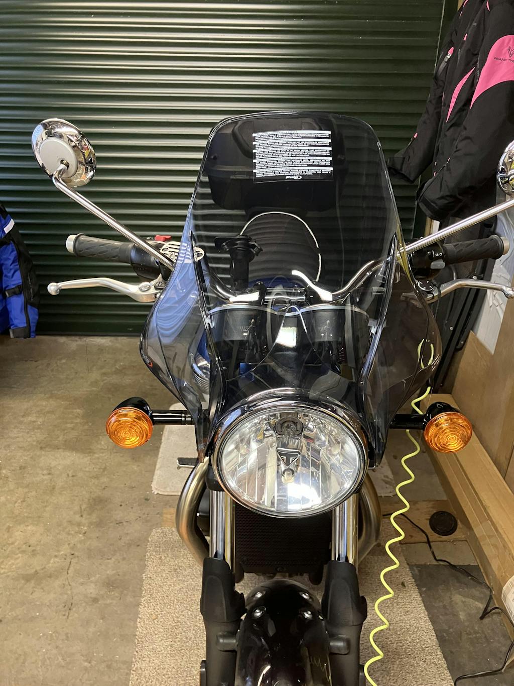 I bought the screen for a 2015 Triumph Bonneville T100. The bike has an aftermarket Motone headlight so there’s a slightly bigger gap between headlight and screen. The screen would have fitted even better on a standard headlight and is very straightforward to fit.