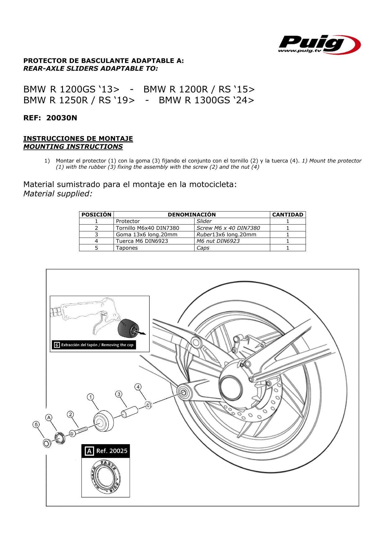 Puig swing arm protectors reduce the damage caused by scratches and scuffs to the swing arm on your BMW R Nine T Pure.
